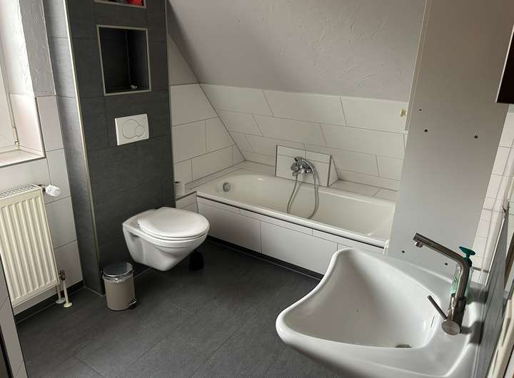 Im Obergeschoss stehen drei gut geschnittene Schlafzimmer zur Verfügung sowie ein großes Badezimmer mit Badewanne und Dusche. Der ausgebaute Spitzboden bietet zusätzliche Nutzungsmöglichkeiten, beispielsweise als Kinderbereich, Hobbyraum oder Rückzugsort.