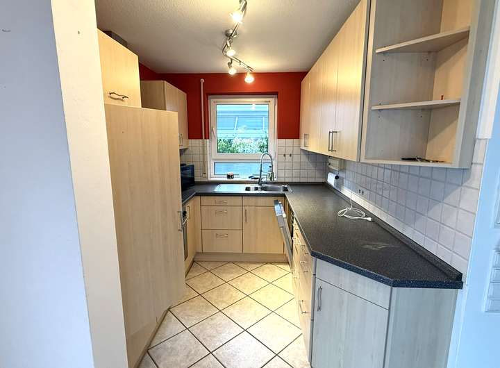Die Küche ist zum Wohn- und Essbereich hin offen und verfügt über eine Einbauküche mit Elektrogeräten.