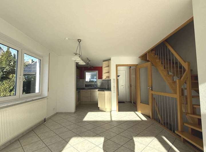 Im Erdgeschoss des Hauses befindet sich das helle Wohn- und Esszimmer mit davorliegendem kleinen "Wintergarten". Dadurch gelangt sehr viel Sonne in diesen Bereich. Im Wohn- und Esszimmer ist ein Fliesenboden verlegt.