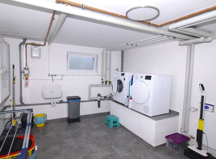 Im Untergeschoss stehen Ihnen ein großzügiger Hobbyraum mit ca. 31 m², eine praktischer Kellerraum, sowie der Hauswirtschaftsraum mit moderner Haustechnik zur Verfügung.