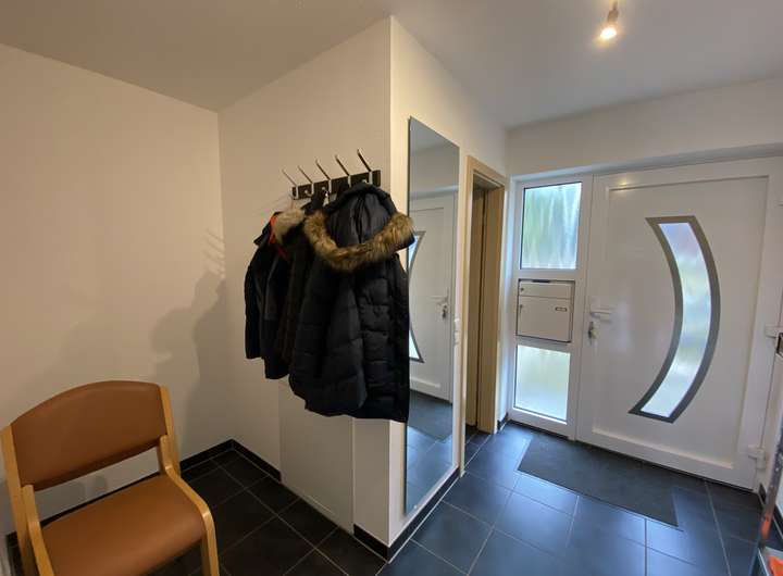 Über den hellen und abgetrennten Flurbereich mit Platz für Garderobe und Schuhschrank betritt man diese sehr schön gebaute DHH , die viel Platz und wunderbare Helligkeit anbietet. In diesem Bereich ist noch die Gäste Toilette.