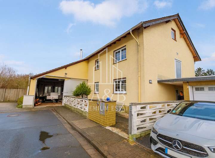 Zusätzliche Nutzfläche bietet die beheizte Halle mit ca. 49 m², die sich ideal zur Unterbringung von Wohnmobil, Boot oder anderen Großfahrzeugen eignet. Die angrenzende Doppelgarage mit ca. 71 m² bietet Platz für zwei PKWs und verfügt über eine praktische Werkstattgrube. Dahinter befindet sich eine weitere Werkstatt – perfekt für Handwerker und Hobbybastler. Zwei zusätzliche Außenstellplätze runden das umfangreiche Parkplatzangebot ab.