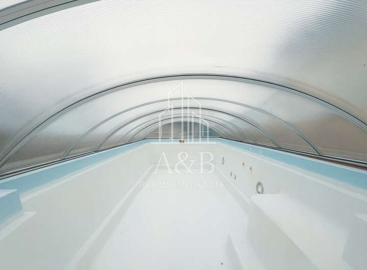 Der Garten stellt eine wahre Wohlfühloase dar: Ein hochwertiger Swimmingpool, gepflegte Rasenflächen und ein separater Grillplatz schaffen perfekte Bedingungen für entspannte Stunden im Freien – ideal für Familien, Hobbygärtner und Genießer.