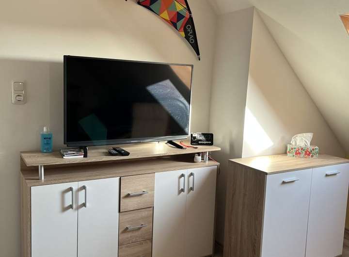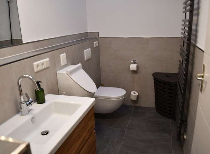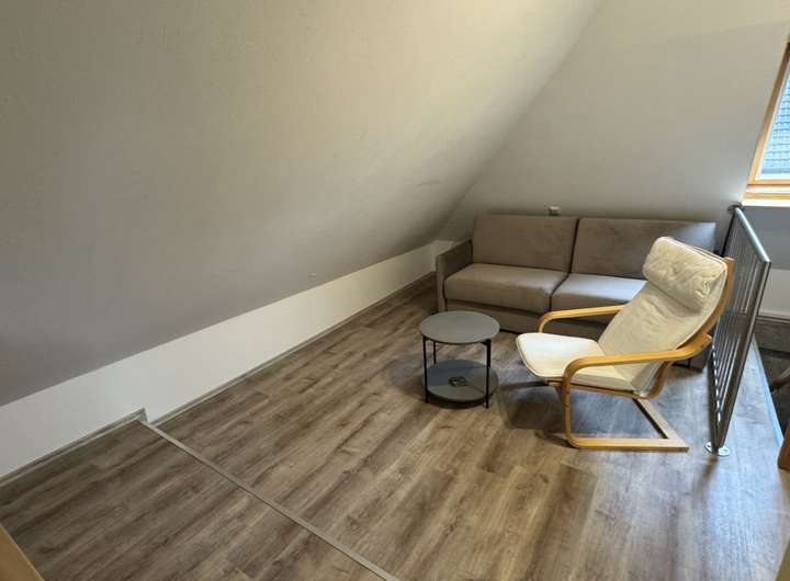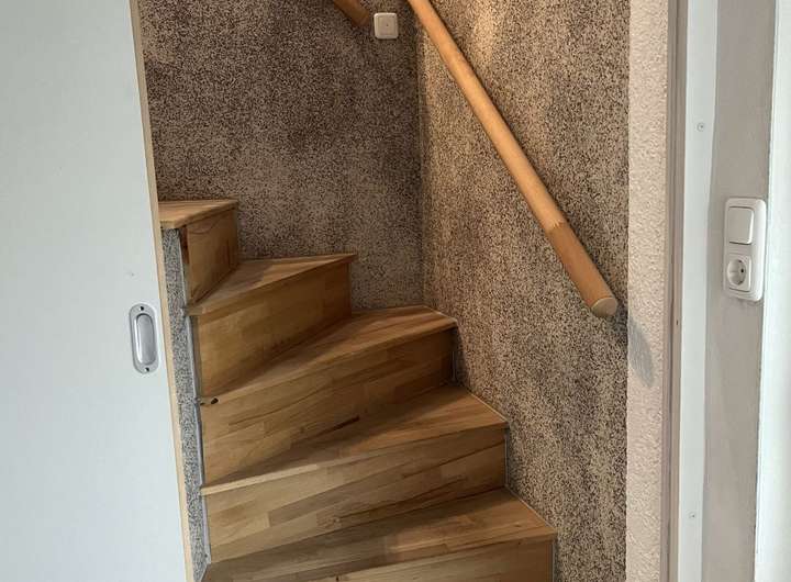 Die zweite Einheit hat einen separaten Eingang von der Seite des Hauses. Im Erdgeschoss befindet sich eine separate Küche (ebenfalls mit moderner und ansprechender Küchenzeile) sowie ein Aufgang ins Obergeschoss.