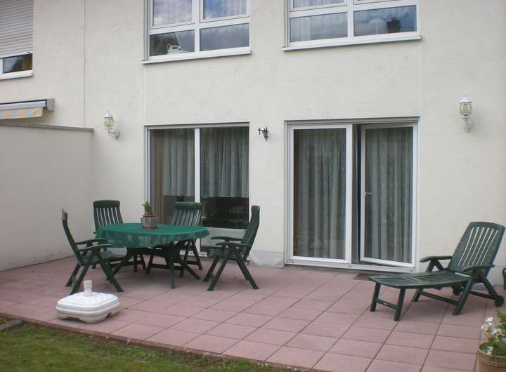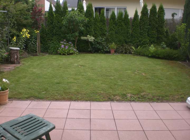 Süd-West Lage mit großer Terrasse und Sichtschutz zu den Nachbarn.
