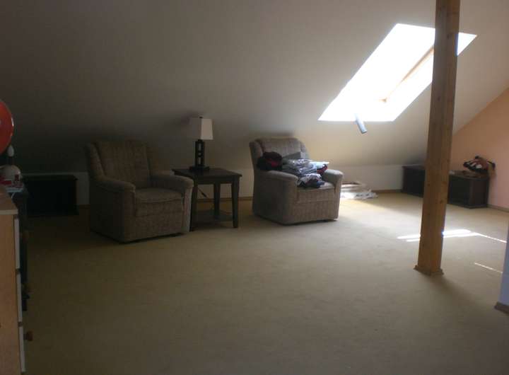 Großes Dachstudio mit 2 Fenstern und 2 Dachfenstern. Dieses Dachstudio kann in 2 separate Räume unterteilt werden, da die Türen und Elektrik vorgerüstet sind. Auch Küchenanschlüsse sind vorhanden.