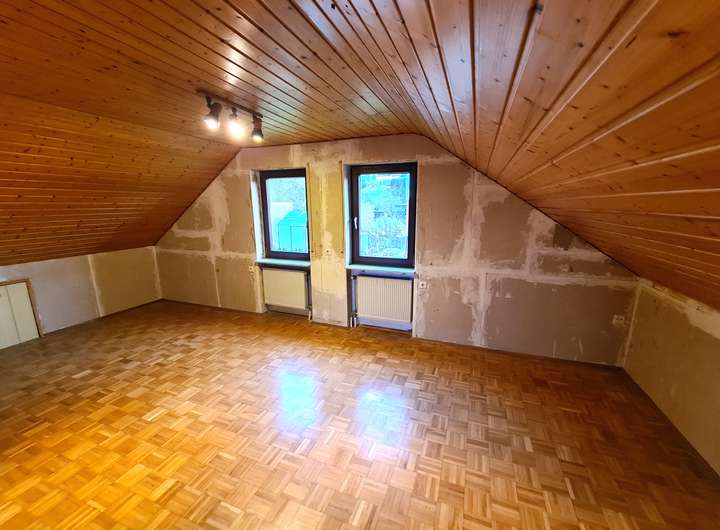 Was bleibt am Haus noch zu tun? Es sollte umfangreich renoviert (der Eigentümer hat schon einmal alle Zimmer abtapeziert), eine Küche eingebaut und bei Bedarf die Technik und Fenster modernisiert werden.