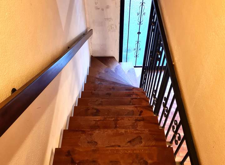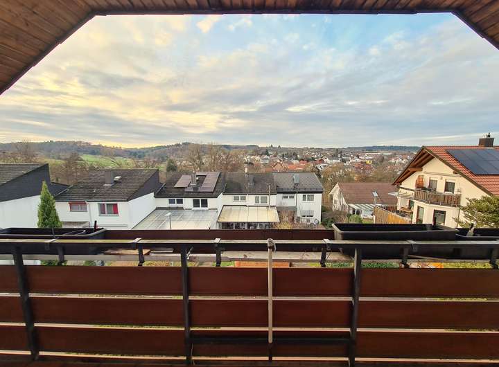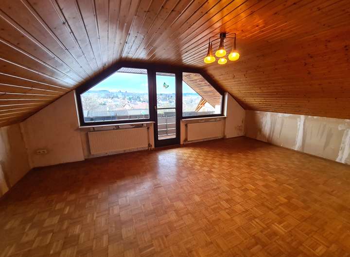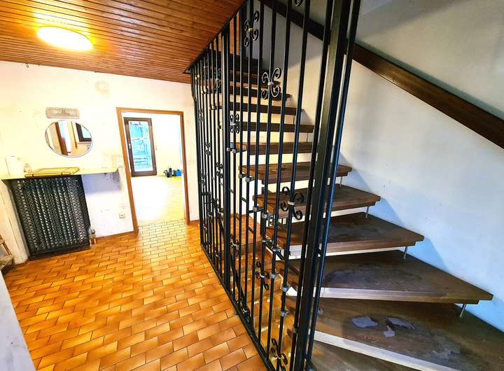 Im Obergeschoss gibt es 2 schöne Zimmer, einen Balkon mit schöner Fernsicht sowie ein Tageslicht-Duschbadezimmer mit WC, Handwaschbecken und Heizung.