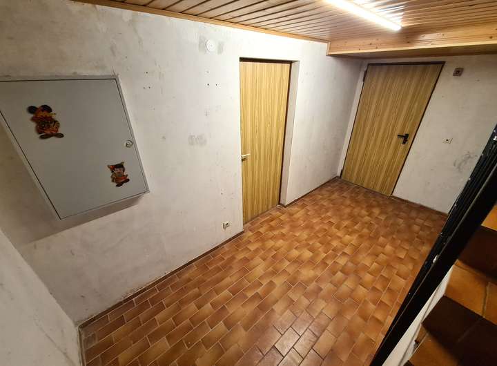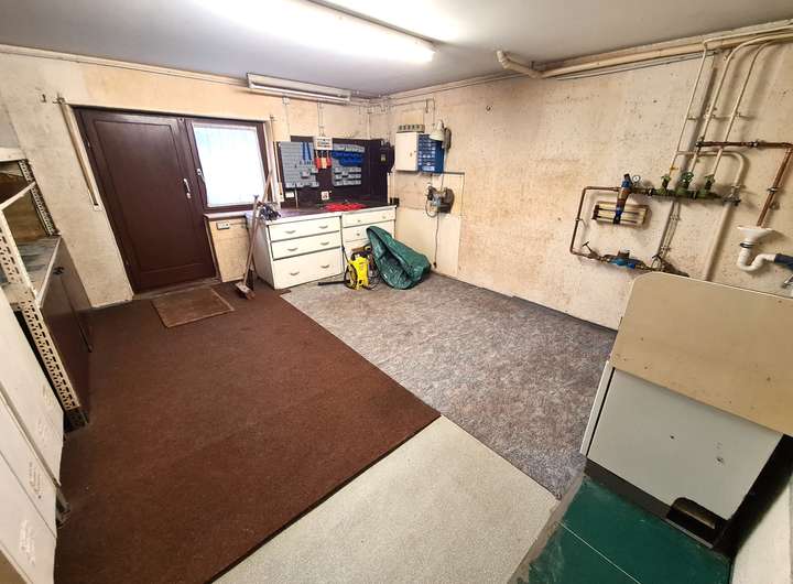 Das voll unterkellerte Haus bietet Ihnen im Untergeschoss neben dem Heizungs-/ und Ölraum einen großen Vorratskeller, den ca. 28 m² großen Hobbyraum sowie den Werkstattbereich inklusive Waschmaschinenanschluß mit Zugang in den Vorgarten.