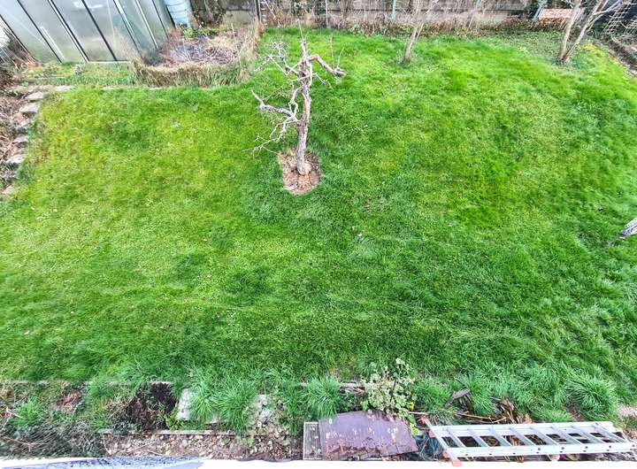 Im Außenbereich haben wir die bereits angesprochene Terrasse mit Markise, ein kleines Gewächshaus sowie den Gartenbereich.