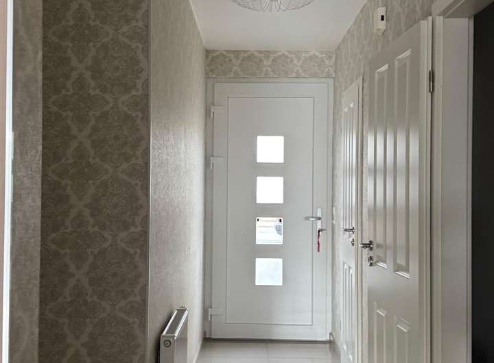 Die Diele, eine gepflegte Einbauküche (ohne Kühlschrank) sowie ein praktischer Abstellraum vervollständigen das Erdgeschoss.
