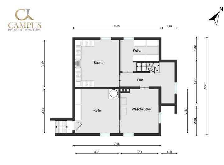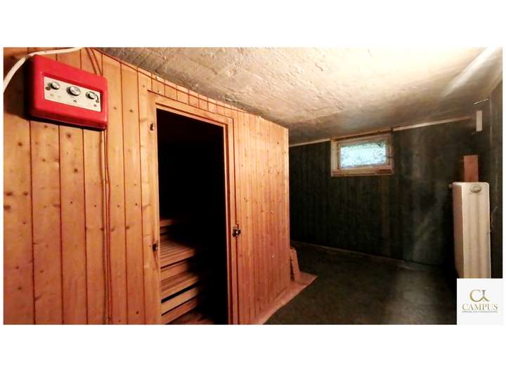 Zusätzlichen Platz bietet der Vollkeller mit ca. 58 m² Nutzfläche, aufgeteilt in Waschküche, Vorratsraum, Werkstatt und einer Sauna – ein echtes Plus für Hobbybastler, Ordnungsliebende und Wellnessfreunde. Ein besonderes Extra ist der separate Zugang vom Garten direkt in den Keller, ideal für Fahrräder, Gartengeräte oder den Weg aus der Sauna an die frische Luft.
