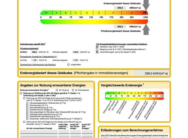 | Energieverbrauchskennwert | 299,0 kWh/(m²*a) |