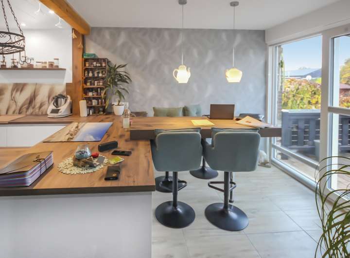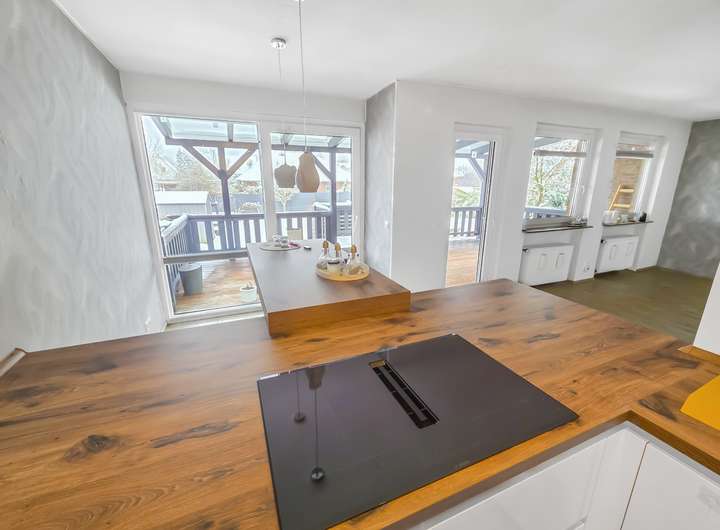 Hochwertige Einbauküche (2022) mit Elektrogeräten.