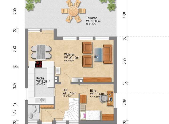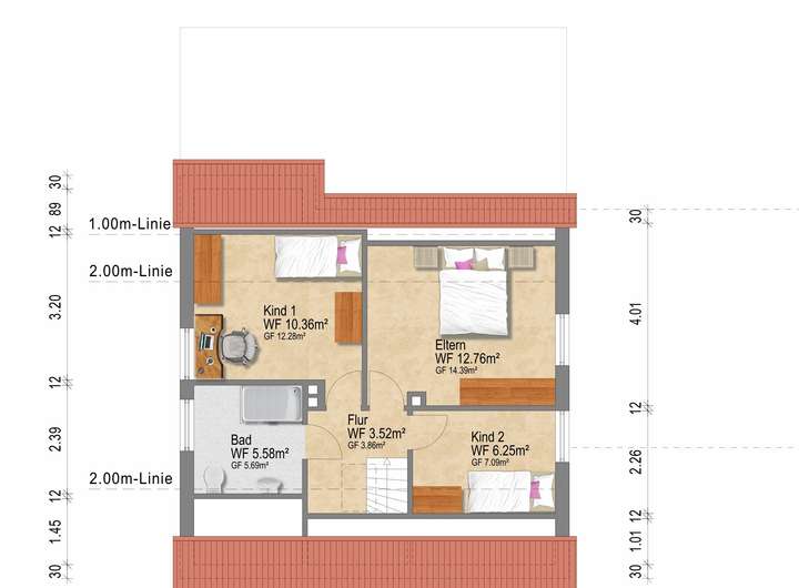 ca. 110 m² Wohnfläche, 5 Zimmer, Küche, Bad, Gäste-WC, 2 Flure