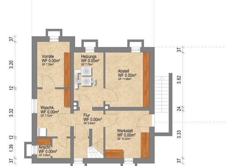 6 Kellerräume unterteilt in Waschküche, Werkstatt, Anschlussraum, Heizungsraum, Sauna und Abstellräume.