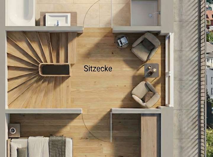 - Interieur: Hochwertige Bodenbeläge, lichtdurchflutete Räume, moderne Sanitärausstattung.