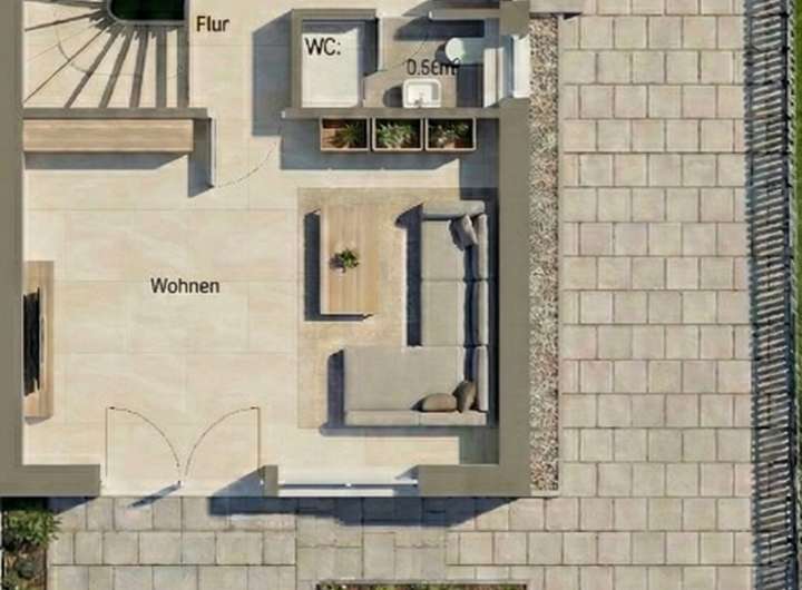 - Außenbereich: Terrasse mit eigenem Gartenanteil.