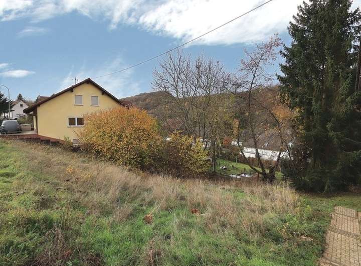 Das 574 m² große Grundstück in Hanglage ist voll erschlossen und sofort bebaubar.