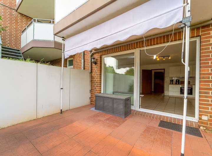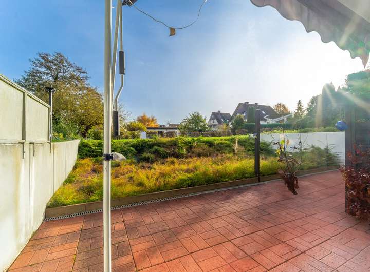 Flur sowie eine freundliche Einbauküche runden das Raumangebot ab. Die Terrasse lädt