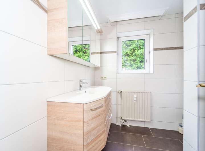 Verfügung, ideal für Singles oder Paare. Ein helles Duschbad mit Fenster, ein großzügiger