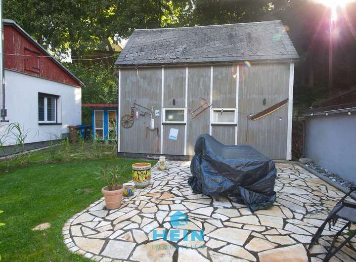Zum Anwesen gehören außerdem eine massiv gebaute Garage sowie eine großzügige Terrasse, die erst im letzten Jahr neu angelegt wurde. Diese Außenbereiche unterstreichen die hohe Lebensqualität und machen das Ensemble sowohl funktional als auch optisch komplett.