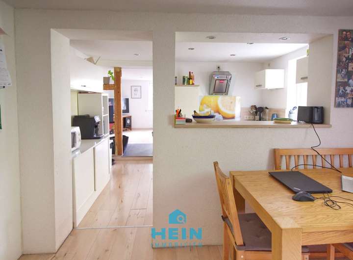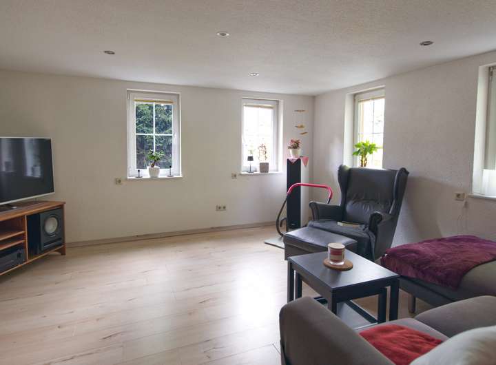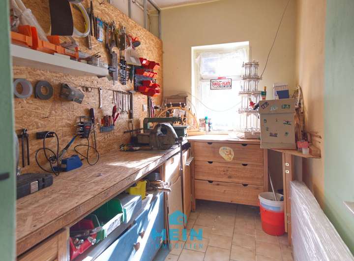 Das Wohnhaus, dessen Ursprünge um 1890 liegen, bietet eine Wohnfläche von rund 160 m², die sich auf drei Ebenen verteilt. Im Erdgeschoss befindet sich eine gemütliche 2-Raumwohnung, die 2019 zu einer Einliegerwohnung mit Fußbodenheizung ausgebaut wurde. Sie umfasst ein funktional gestaltetes Bad, eine moderne Küche sowie ein Wohn- und ein Schlafzimmer – ideal für Gäste, zur Vermietung oder als eigenständige Einheit für Familienmitglieder. Darüber hinaus sind im Erdgeschoss auch der Heizungsraum mit Gas-Brenntwerttherme und Luft-Wärme-Tauscher und ein praktischer Abstellraum untergebracht, die zusätzlichen Stauraum und Funktionalität bieten.