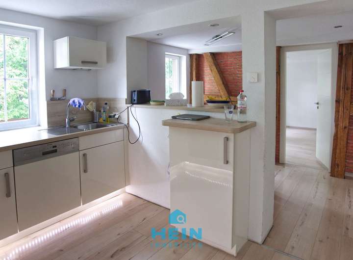 Ein besonderes Plus ist die hochwertige Ausstattung, die komplett im Objekt verbleibt: Alle Einbauküchen – im Obergeschoss des Wohnhauses (Einbau 2015), im Erdgeschoss (Einbau 2019) sowie im Nebengebäude (Einbau 2021) – sind im Kaufpreis enthalten. Ebenso verbleiben sämtliche Kaminöfen im Objekt. Weitere Möbelstücke können nach Absprache übernommen werden.