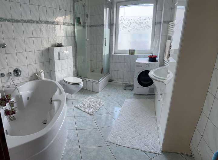 Das Obergeschoß wartet mit zwei Kinderzimmern und einem großen Schlafzimmer auf, das gepflegte Vollbad hat ein Fenster, eine whirlpoolwanne und eine Eckdusche.