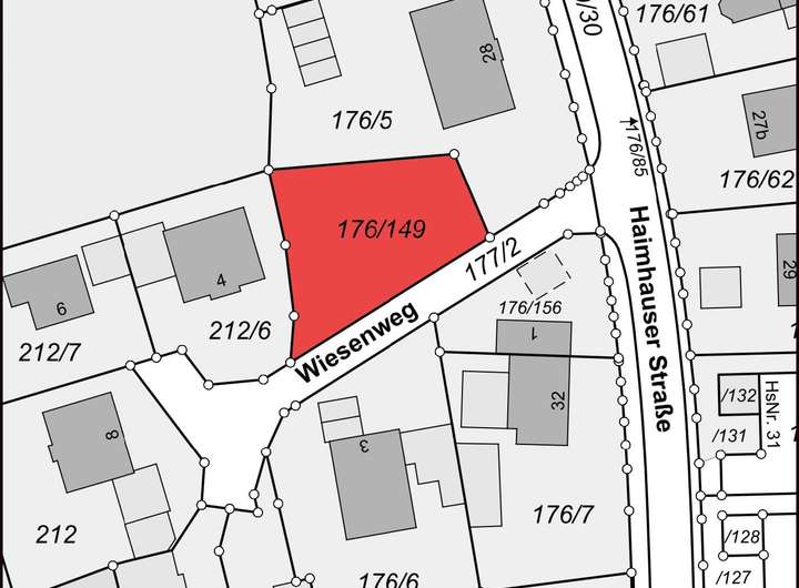 Das Grundstück liegt im Wiesenweg, einer kleinen Seitenstraße ohne Durchgangsverkehr.