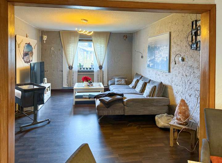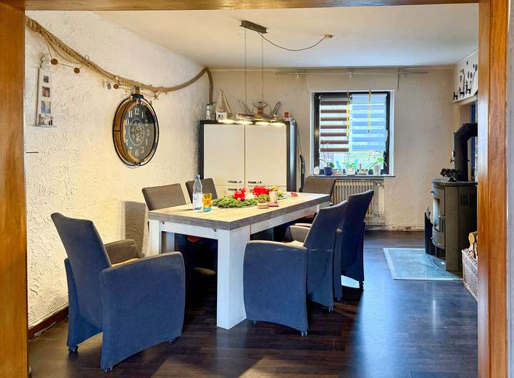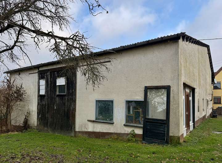 Dieses renovierungsbedürftige Einfamilienhaus aus ca. 1950 bietet auf rund 138 m² Wohnfläche und einem weitläufigen Grundstück von ca. 1.500 m² viel Platz. Der zweigeschossige Massivbau überzeugt mit einer guten Raumaufteilung: Im Erdgeschoss befinden sich ein Schlafzimmer, ein großer Wohn- und Essbereich mit Kaminofenanschluss, eine Küche sowie ein Gäste-WC – ideal für ältere Personen oder barrierearme Wohnkonzepte. Im Obergeschoss stehen drei weitere Zimmer und ein Bad bereit. Der Vollkeller mit vier Räumen sorgt für viel Stauraum. Auf dem Grundstück befinden sich außerdem eine große ehemalige Scheune /z.T. vermietet mit drei Teilbereichen sowie ein Garagengebäude, die vielfältige Möglichkeiten für Hobbys, Werkstatt, Lager oder zusätzliche Fahrzeuge bieten. Die großzügige Hofeinfahrt schafft weitere Stellplätze. Das Objekt wird zu Ende Januar 2026 frei.