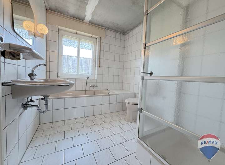 Im Obergeschoss erwarten Sie zwei helle Schlafzimmer und ein Badezimmer mit Badewanne, Dusche, Waschbecken und Toilette.