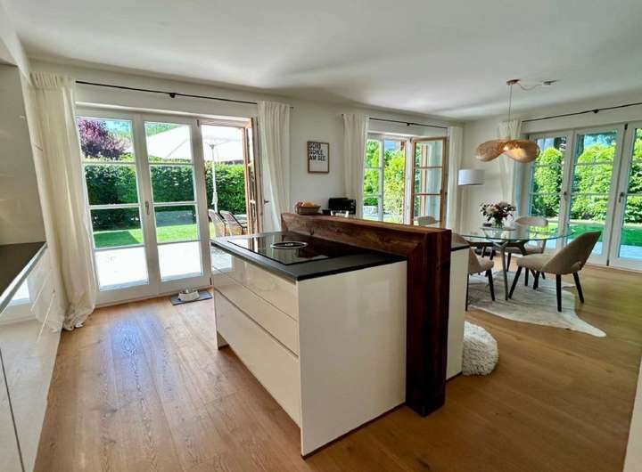 Diese exklusive Garten-Wohnung in Rottach-Egern, erstreckt sich über das gesamte Erdgeschoss mit ca. 198 m² Wohnfläche. Das Mehrfamilienhaus wurde vom Architekten A. Erlacher entworfen und im Jahr 2016 erbaut. Die luxuriöse Ausstattung und die durchdachte Raumaufteilung beider Wohnungen lassen keine Wünsche offen. Eine hochwertige Einbauküche ist bereits vorhanden und fügt sich nahtlos in das Gesamtbild ein. Ein besonderes Highlight sind die Terrassen mit einer Gartenfläche von insgesamt ca. 585 m². Zwei separate Kellerräume bieten zusätzlichen Stauraum. Die Verfügbarkeit für die 3-Zimmer-Wohnung ist sofort gegeben, die Nachbarwohnung mit ca. 78 m² ist ab Herbst 2026 zum Kauf und zur Erweiterung verfügbar.