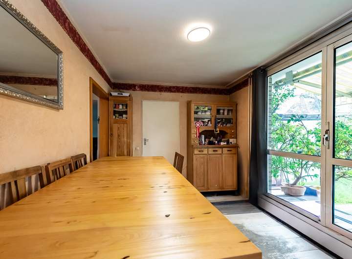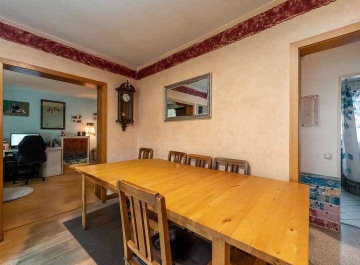 Aktuell in zwei abgeschlossene Wohneinheiten im Erd- und Obergeschoss aufgeteilt, lässt sich das Haus mit einigen Grundrissanpassungen problemlos wieder zu einem großzügigen Einfamilienhaus vereinen – ideal für Familien, die Platz und Gestaltungsspielraum schätzen.
