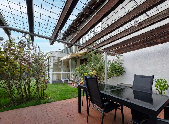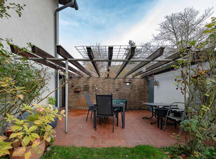 Die Terrasse und der wunderschön eingewachsene Garten sind echte Highlights: Sonnenliebhaber wie Schattenfreunde finden hier zu jeder Tageszeit den passenden Platz. Für Kinder bietet das grüne Paradies viel Raum zum Spielen und Entdecken.