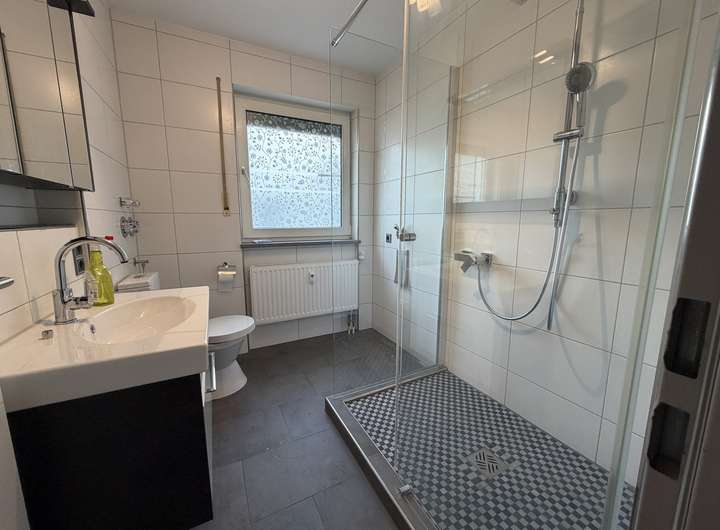 das Badezimmer wurde vollständig erneuert und mit einer großen, bodenebenen Dusche ausgestattet