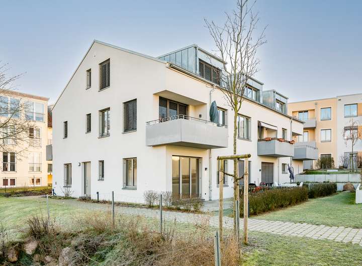 Die Eigentumswohnung befindet sich in einem zweigeschossigen Neubau-Quartier, bestehend aus fünf Wohnhäusern, welche im Jahr 2021 fertiggestellt wurden. Insgesamt befinden sich 19 Wohnungen und 4 Gewerbeeinheiten in dem Quartier, das über eine Tiefgarage mit 28 Stellplätzen und 73 Abstellflächen für Fahrräder verfügt. Geprägt ist das Projekt von einem großzügigen Gemeinschaftsgarten, der auf vielfältige Weise genutzt werden kann.