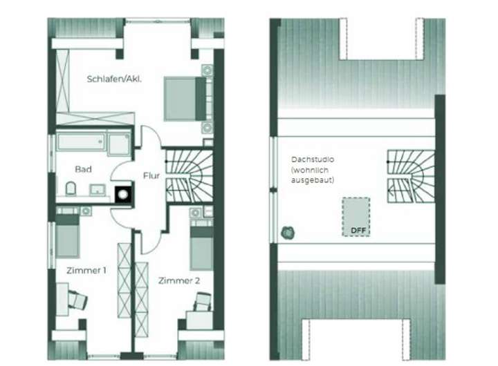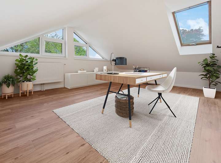 Viele Nutzungsmöglichkeiten bietet das voll ausgebaute Dachstudio, das nicht in der Wohnfläche enthalten ist.