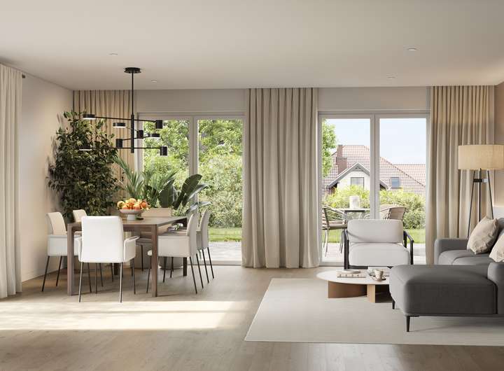 Ein offenes Raumkonzept im Wohnbereich bietet viel Platz für individuelle Möblierungsideen.