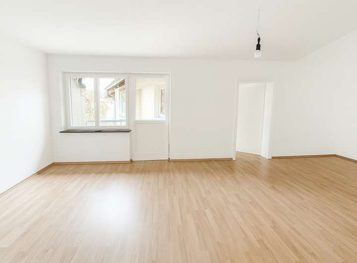 Die Wohnung umfasst ein helles Wohnzimmer, drei weitere gut geschnittene Zimmer, eine separate Küche sowie ein Tageslichtbad. Die großen Fenster sorgen für lichtdurchflutete Räume und ein angenehmes Wohnambiente.