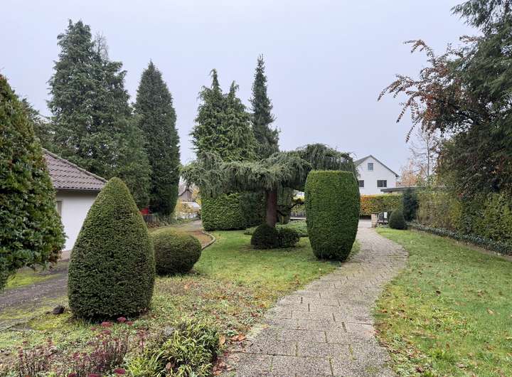 Zum Haus gehören ein großer schöner Gartenbereich mit Garage und großzügiger Einfahrt in Südlage und ein großer Gartenbereich mit Abstellgebäude hinter dem Haus in Nordlage.
