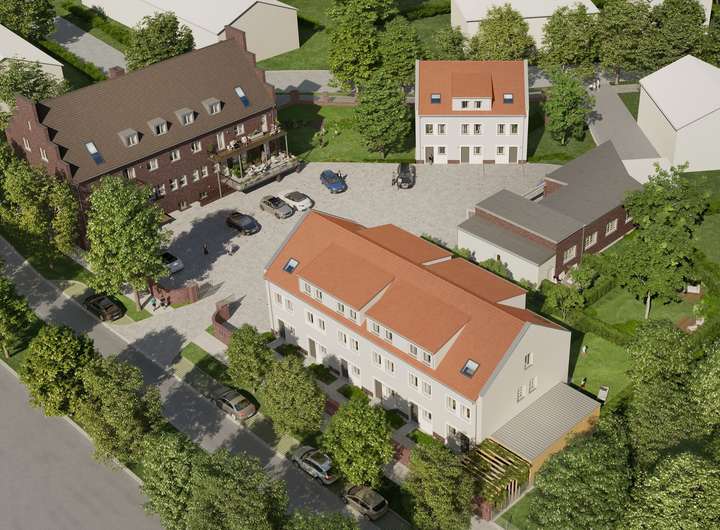 Auf dem rund 3.700 m² großen Grundstück entsteht ein Wohnort mit Grünflächen, kurzen Wegen und einer Verbindung aus Altbau und neuer Bauweise. Kinder können auf dem Gelände spielen, während Sie im Homeoffice arbeiten oder nach Berlin pendeln.