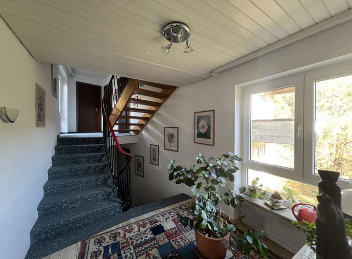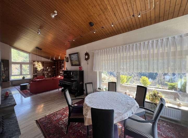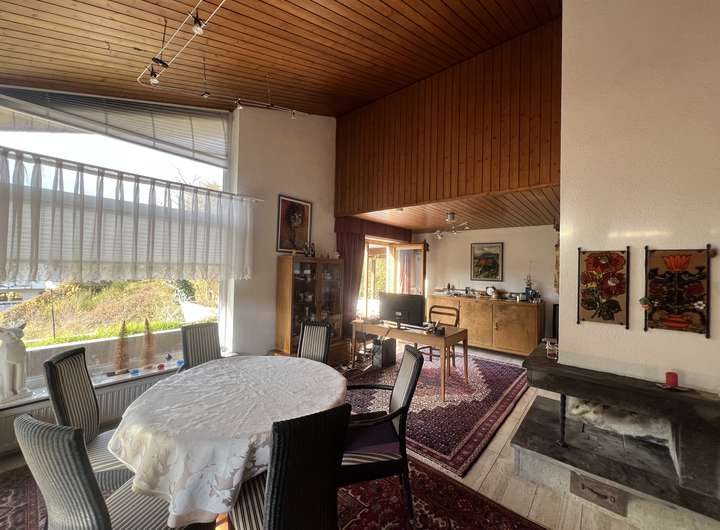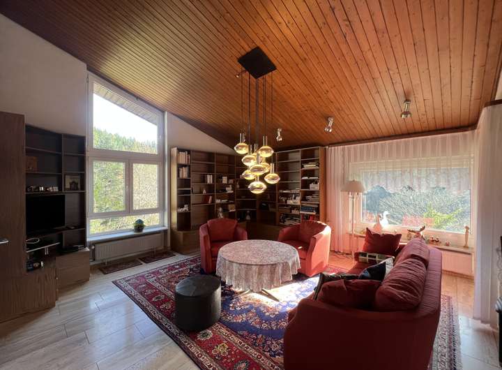 Dieses großzügige Einfamilienhaus mit separater Einliegerwohnung besticht durch seine ruhige Hanglage und eine unvergleichliche Aussicht, die das Wohngefühl hier zu etwas ganz Besonderem macht. Die Hauptwohnung empfängt Sie mit insgesamt fünf großzügig geschnittenen Zimmern, die sich ideal für unterschiedlichste Wohnbedürfnisse eignen. Das Herzstück bildet der lichtdurchflutete Wohn- und Essbereich, dessen große Fensterfronten nicht nur viel Tageslicht hereinlassen, sondern auch einen beeindruckenden Ausblick auf die umliegende Landschaft ermöglichen. Zwei Balkone und eine weitläufige Terrasse laden dazu ein,