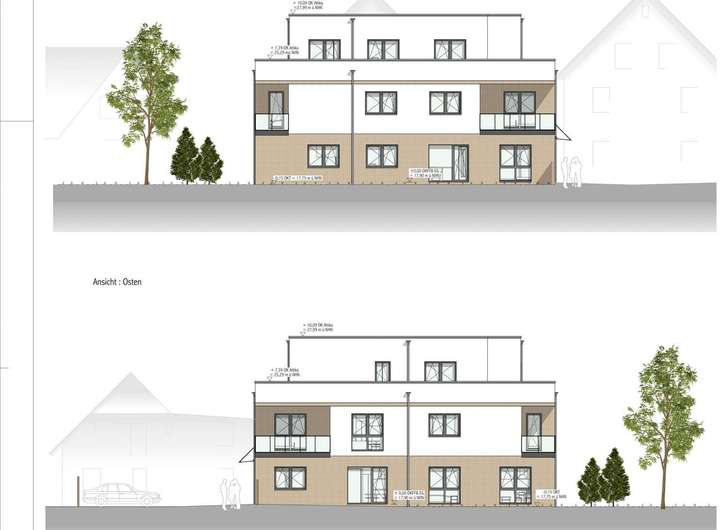 Die Baugenehmigung umfasst ein Mehrfamilienhaus mit 10 Wohneinheiten, 2 Stockwerken und einer Stellplatzanlage für 10 Pkw. Die moderne Architektur passt sich optimal an die bestehende Bebauung im Umfeld an und bietet ausreichend Wohnraum.