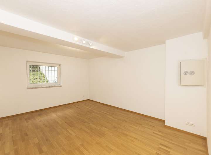 Im Souterrain befinden sich zusätzliche Räume, die ideal als Schlafzimmer, Büro oder Gästebereich genutzt werden können. Ergänzt wird die Ebene durch ein großes Badezimmer mit eingebauter Sauna und Whirlpoolwanne und bietet dem Eigentümer somit einen eigenen kleinen Wellnessbereich. Ein separater Abstellraum mit Anschlüssen für Waschmaschine und Trockner bietet direkten Zugang sowohl zum Treppenhaus als auch zur Garage.