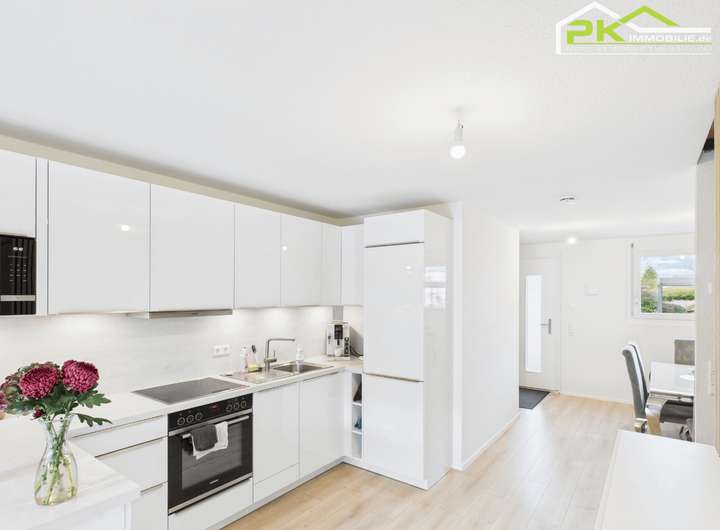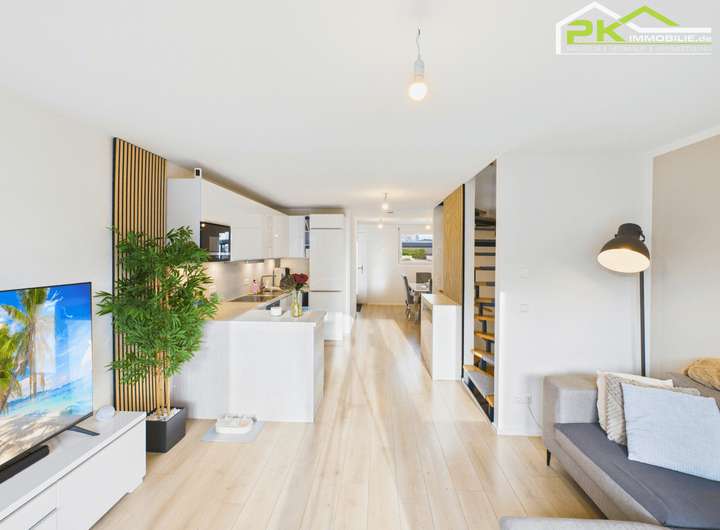 Schon beim Betreten des Hauses spürt man die besondere Atmosphäre: Der lichtdurchflutete Wohnbereich im Erdgeschoss empfängt Sie mit hochwertigem Laminatboden und einer angenehmen Fußbodenheizung, die Wärme und Gemütlichkeit schafft. Die moderne, hochwertige und im Hauspreis enthaltene Einbauküche des Herstellers LEICHT-Küche fügt sich harmonisch ein und bildet mit dem Wohn- und Essbereich eine offene Einheit, die zum gemeinsamen Kochen, Lachen und Zusammensein einlädt. Direkt angrenzend öffnet sich der Blick in den liebevoll angelegten Garten – ein Rückzugsort, der jeden Tag zu einer kleinen Auszeit im Freien werden lässt.