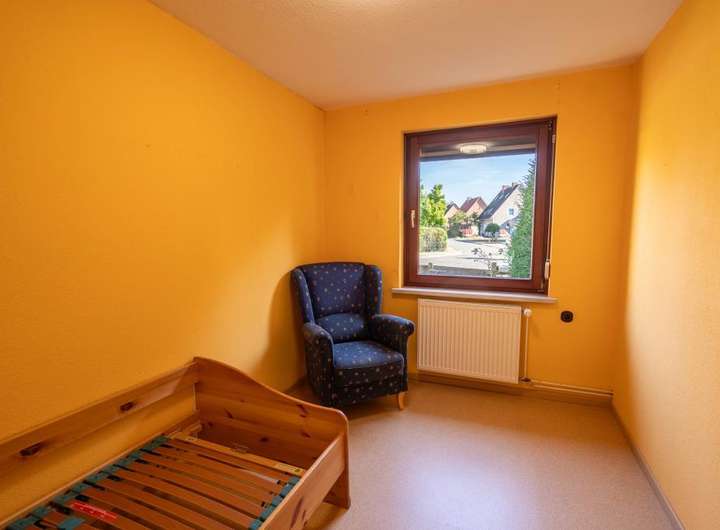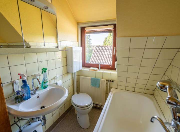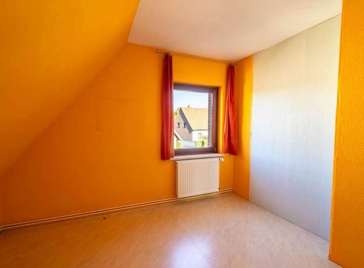 Je nach Bedürfnis und statischen Möglichkeiten können die Zimmer im Obergeschoss auch zusammengelegt und fortan dem Anspruch an einem modernen Wohnen dienen. Insbesondere das Badezimmer bedarf einer Renovierung und könnte in diesem Zusammenhang vergrößert werden.