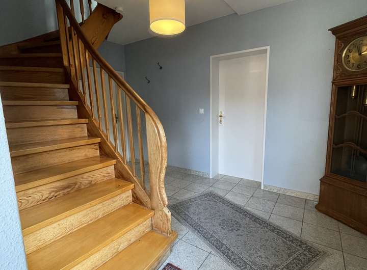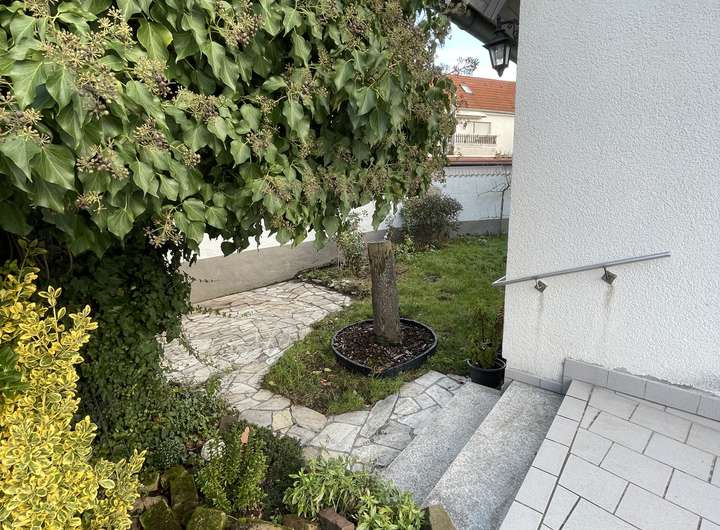 Sehr geräumiges, einseitig angebautes und saniertes 1-Familien-Haus (Baujahr 1965) mit 3 Bäder - diverse Wohn-/Schlafzimmer - 3 Küchenanschlüsse und 2 Einbauküchen mit Elektrogeräten vorhanden - Flure - Abstellräume - voll ausgebautes Dachgeschoss mit Galerie über Treppe erreichbar - herrlicher Terrassengarten mit Grünfläche - diverse Kellerräume - Garage mit Wallbox - PV-Anlage mit Energiespeicher für OG und DG.