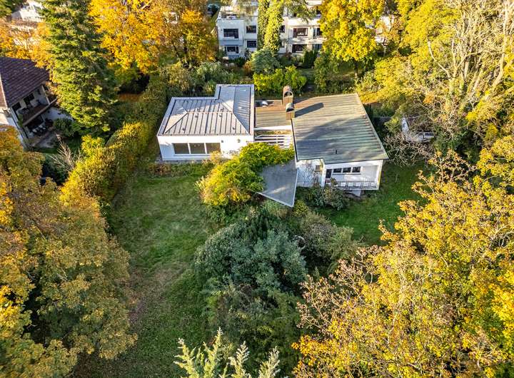 Absolut uneinsehbar und privat, ruhig und fernab jeglichen Durchgangsverkehrs befindet sich auf dem Grundstück aktuell noch ein Altbestand, der abzureißen wäre. Der aktuelle Bungalow ist ideal zur sonnigen Süd-Seite und dem Park-Areal ausgerichtet.