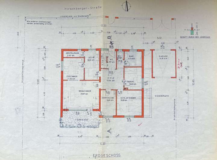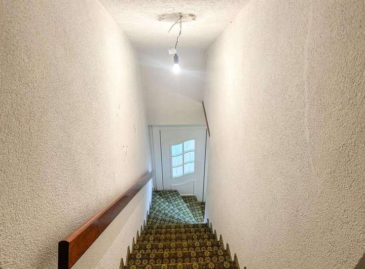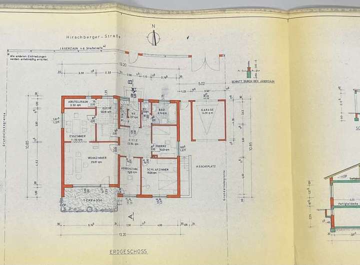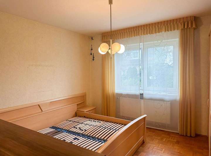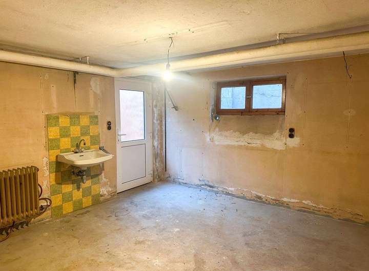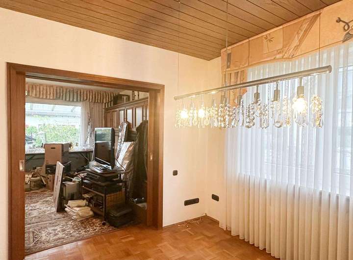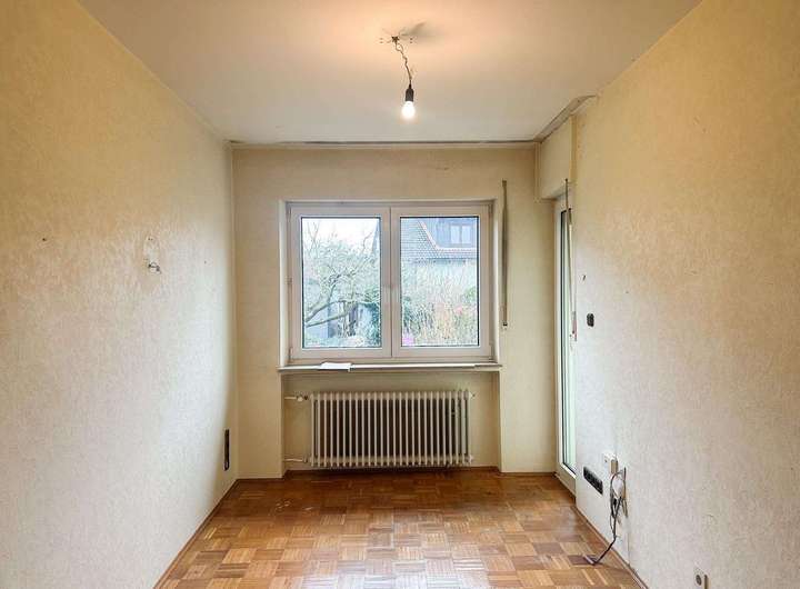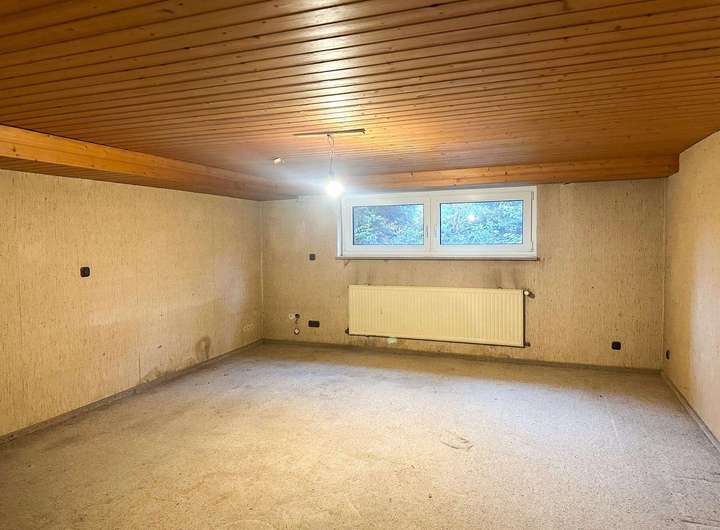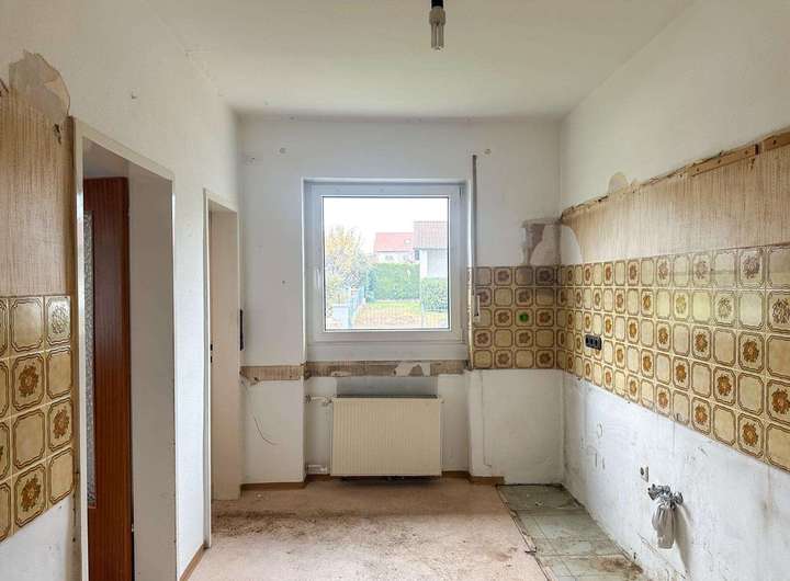Der vorhandene Bestandsbau – ein freistehendes Einfamilienhaus mit rund 112 m² ausgewiesener Wohnfläche – befindet sich in sanierungsbedürftigem Zustand und entspricht einem einfachen Ausstattungsstandard. Neben den Wohnräumen bietet das Gebäude zusätzliche Nutzflächen im Keller sowie ein ausgebautes Dachgeschoss, die jedoch nicht in der offiziellen Wohnflächenberechnung enthalten sind.
